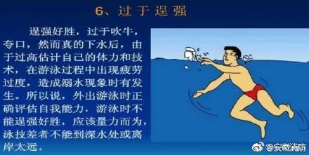 7、不到不熟悉、无安全设施、无救援人员的水域游泳。