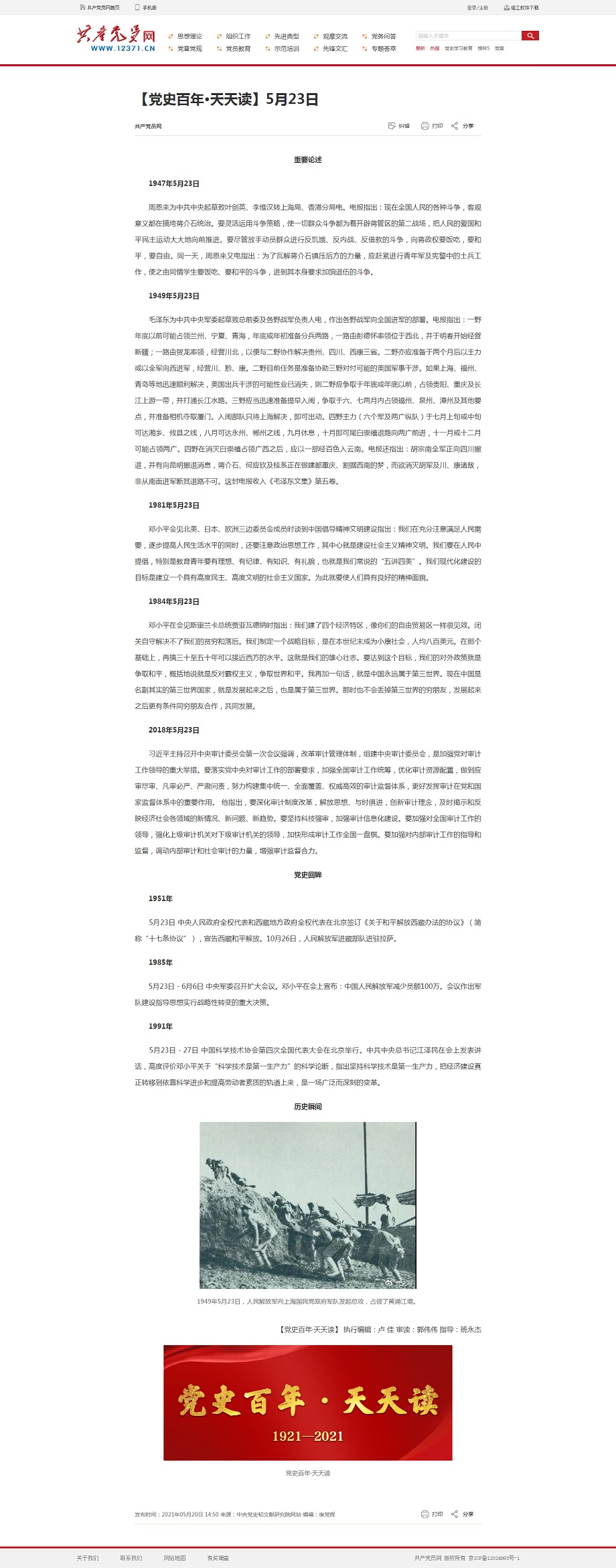【党史百年·天天读】5月23日